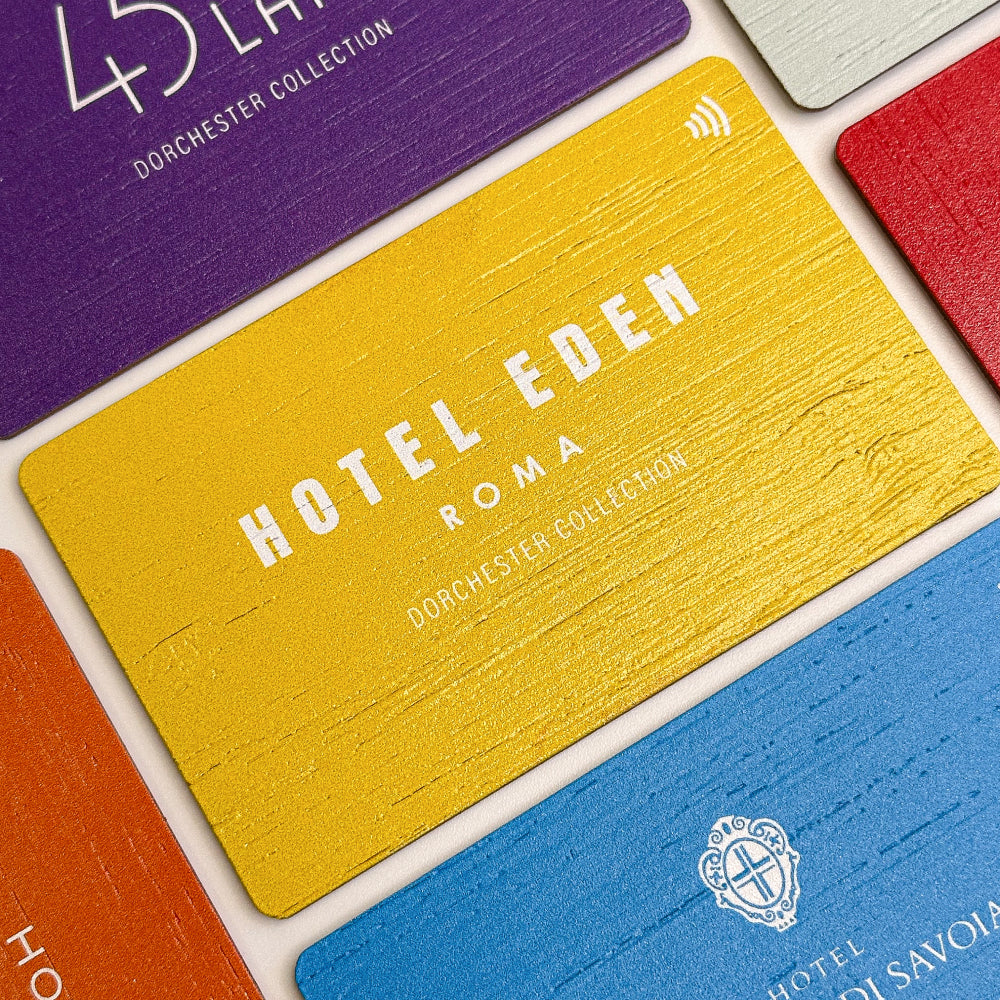 For these cards, we offer an NFC chip within a sticker with is attached to the card surface. The card thickness is 0.8mm/0.03”, which is equivalent to a credit card. The card has a debossed area to allow the chip to sit flush with the card surface. The chip can only be read from the one side of the card it is located on (front or rear side, as required).